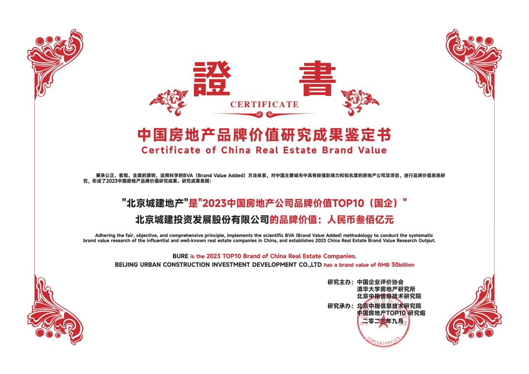 公司凭借稳健业绩、良好的投资理念、持续提升的经营质量、合作共荣的发展理念以及较大的增长潜力,品牌实力不断增强,荣获“2023中国房地产公司品牌价值TOP10(国企)”荣誉。