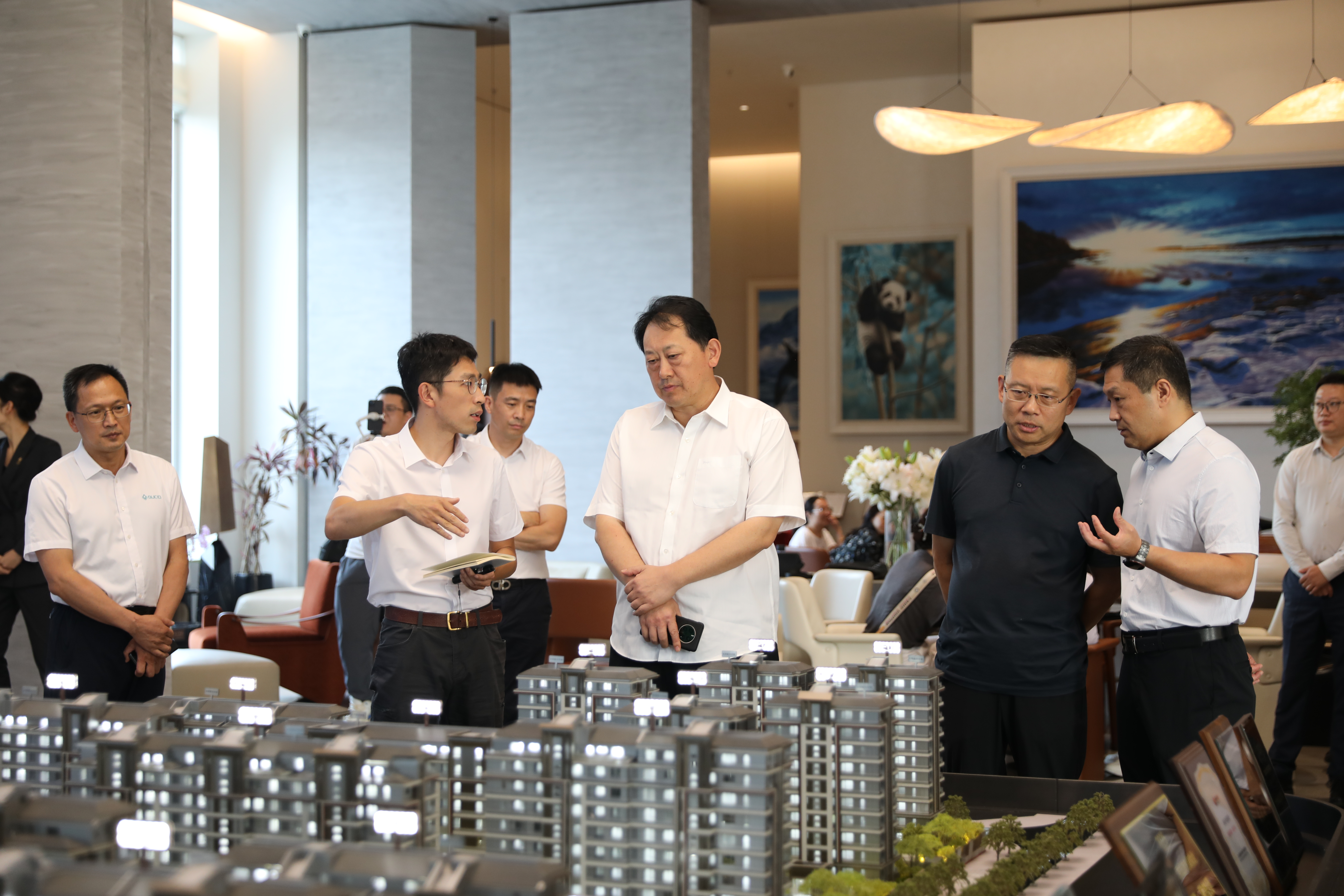 李伟东一行来到公司国誉颂项目,实地察看项目实景展示区、样板示范区,现场听取了项目负责人关于项目建设、销售去化等情况的汇报。